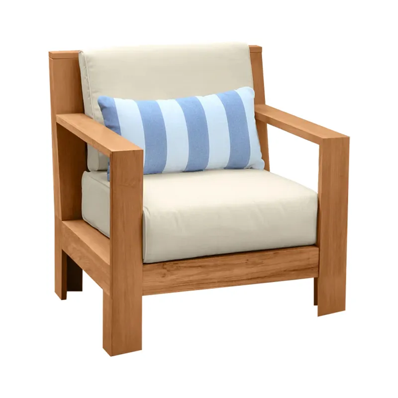 De tunge trehagestolene er laget av høykvalitets tre som er finbearbeidet og spesialbehandlet for å øke stabiliteten og holdbarheten i utendørsmiljøer. Overflaten på treet har gjennomgått en spesiell anti-korrosjonsbehandling og vanntett belegg for å sikre at stolen kan opprettholde sin strukturelle styrke og nye utseende selv under skiftende klimaforhold, som sterkt sollys, kraftig regn eller is og snø. Dette allværsdesignkonseptet gjør stolen til en langsiktig følgesvenn for ethvert uterom. Stolen har en spesialdesignet setepute fylt med elastisk skum med høy tetthet, som gir overlegen komfort og støtte over lengre tids bruk. Stoffet til seteputen bruker avansert anti-fading-teknologi, som kan motstå langvarig eksponering for ultrafiolette stråler og holde fargen lys og ny. Dette øker ikke bare skjønnheten til seteputen, men forlenger også levetiden betydelig, og eliminerer behovet for hyppig utskifting.