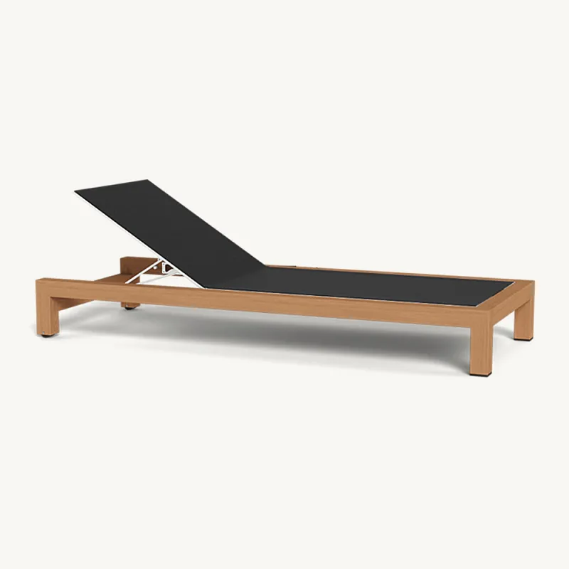 Introduser en blanding av klassisk og moderne stil til uterommet ditt med vår sjeselong i teaknett. Denne sjeselongen er laget av det fineste teak og supplert med slitesterkt mesh-stoff, og kombinerer funksjonalitet med estetisk appell, noe som gjør den til et perfekt tillegg til enhver terrasse, terrasse eller bassengkant.