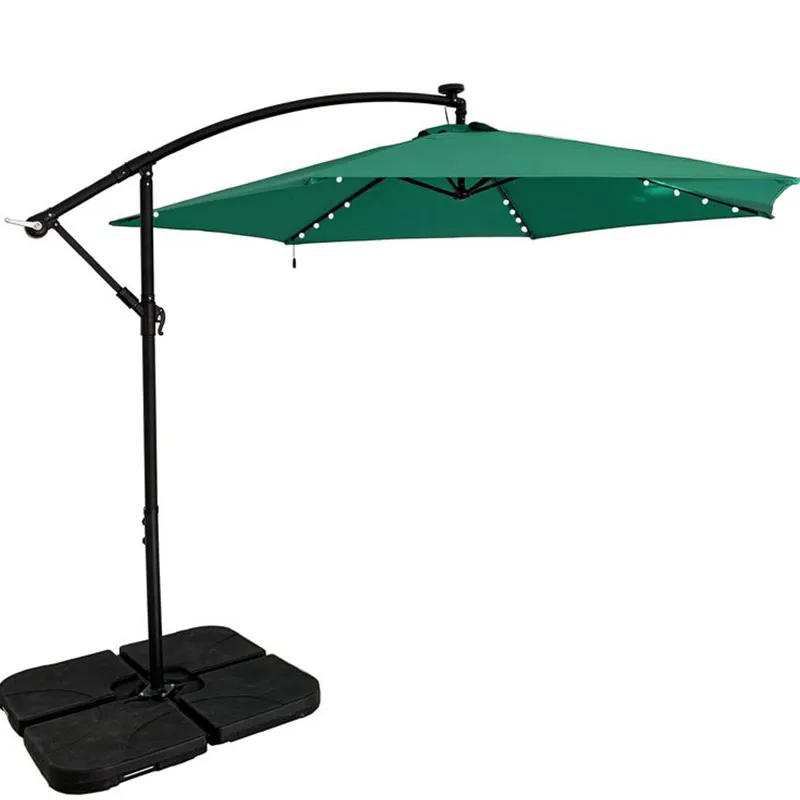 Med tilpassbare fargealternativer som original grønn, rød, blå, beige, grå og svart, kan du skreddersy paraplyen for å matche utendørsdekorasjonen din. Enten du er vertskap for en utendørs fest, nyter daglig fritid eller tilbringer tid med familien, gir Solar Cantilever Paraply utmerket solbeskyttelse og forbedrer utendørsopplevelsen din.