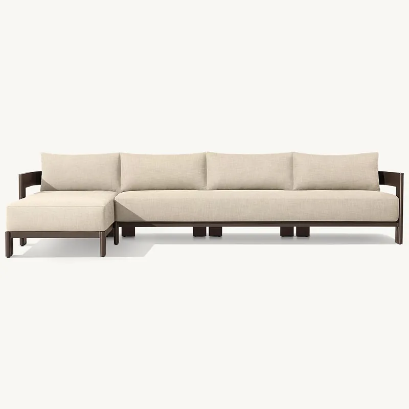 Utformet med presisjon, vår 4-seters utendørs sofa har en høykvalitets aluminiumsramme som gir overlegen holdbarhet og motstand mot rust. Aluminium, kjent for sine lette, men sterke egenskaper, sikrer at utemøblene dine tåler elementene uten å gi etter for korrosjon eller slitasje. Den elegante pulverlakkerte finishen gir et sofistikert utseende samtidig som den beskytter strukturen mot miljøskader.