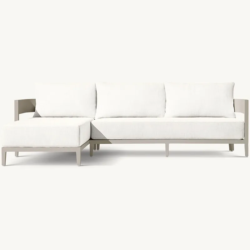 Vår utendørs hjørnesofa aluminium er bygget med en høykvalitets aluminiumsramme som garanterer ikke bare holdbarhet, men også en moderne estetisk appell. Aluminium, kjent for sin rustbestandighet og lette natur, gjør denne sofaen ideell for utendørs bruk i alle klimaer. Rammen er pulverlakkert for ekstra beskyttelse mot elementene, noe som sikrer at sofaen din opprettholder sin uberørte tilstand år etter år.