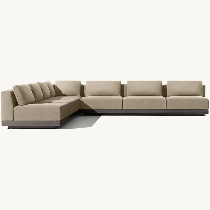 Vår utendørs sofa L-form er ikke bare et møbel; det er en uttalelse om stil og funksjonalitet. Med sin slitesterke aluminiumsramme, romslige sitteplasser og luksuriøse puter, vil denne sofaen garantert bli fokuspunktet for utendørsområdet ditt. Enten du underholder gjester eller nyter en rolig stund alene, gir vår utendørs sofa L-form den perfekte blandingen av komfort og eleganse for alle dine utendørs sammenkomster.