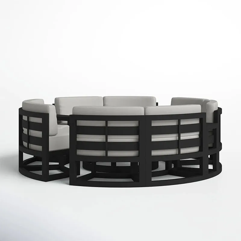 Holdbarhet med aluminium: Aluminium er det valgte materialet for vår runde terrassesofa på grunn av sin lette, men robuste natur. Aluminium er motstandsdyktig mot rust og forfall, og sørger for at utemøblene dine forblir like fantastiske som den dagen du kjøpte dem, uavhengig av værforhold.